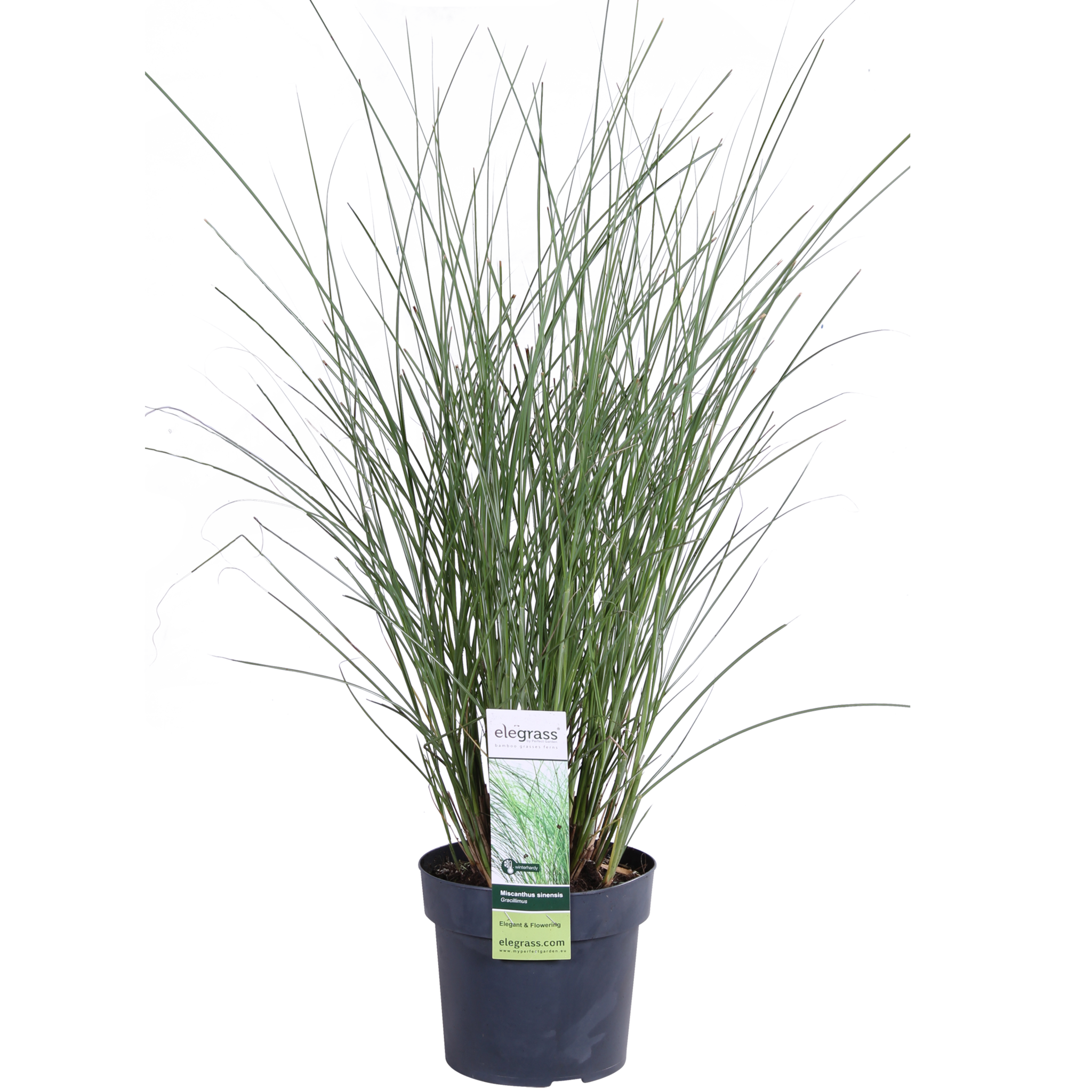 Miscanthus sinensis 'Gracillimus', généralement appelé roseau splendide en néerlandais, est l'une des espèces de miscanthus les plus cultivées. Ce roseau splendide à feuilles caduques a une forme buissonnante et érigée avec des feuilles linéaires très étroites de couleur vert moyen avec une bande centrale blanche, qui deviennent de couleur paille en automne. Miscanthus sinensis 'Gracillimus' fleurit (sporadiquement) d'août à octobre avec des panicules de fleurs cuivrées, qui deviennent blanc argenté plus tard dans la saison lorsque les graines mûrissent. Ce magnifique roseau aime une position ensoleillée et un sol bien drainé, légèrement humide et modérément fertile. Miscanthus sinensis "Gracillimus" est bien rustique et, une fois établi, il tolère la sécheresse. Il tolère la pollution de l'air et les brises marines.