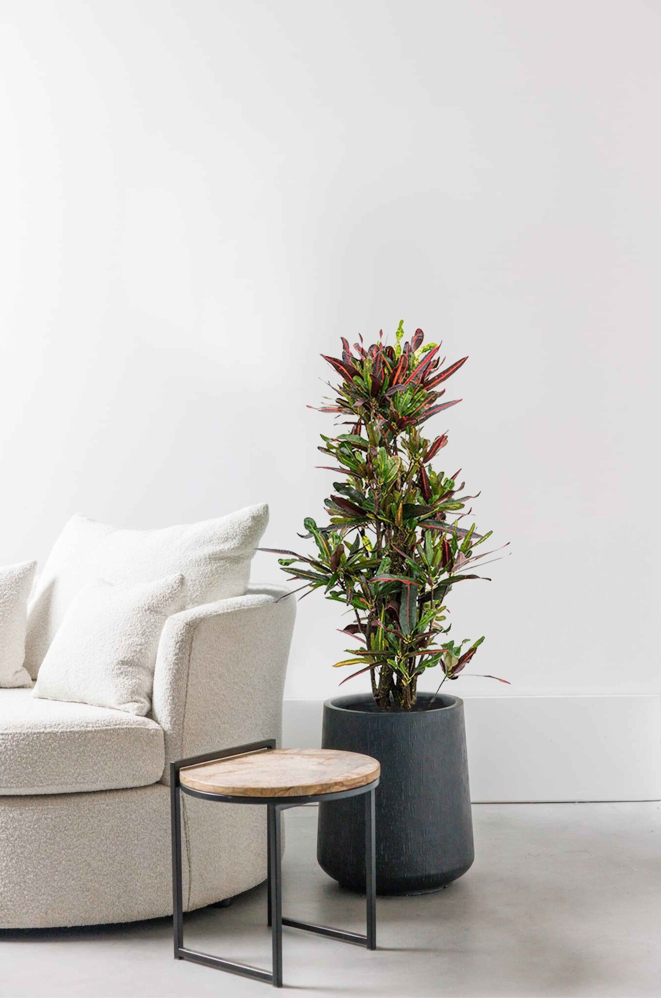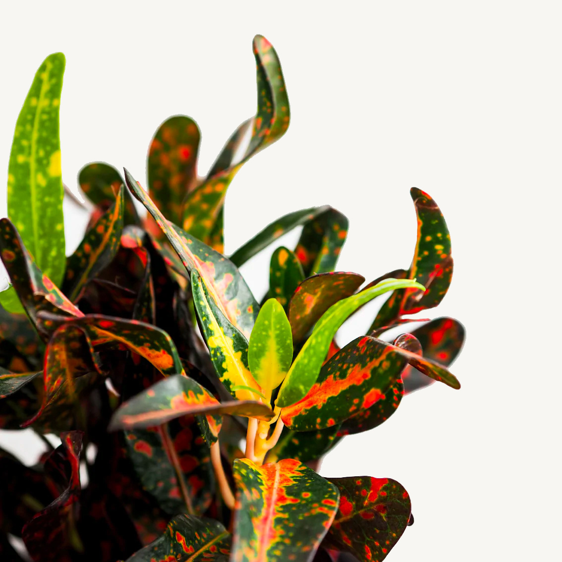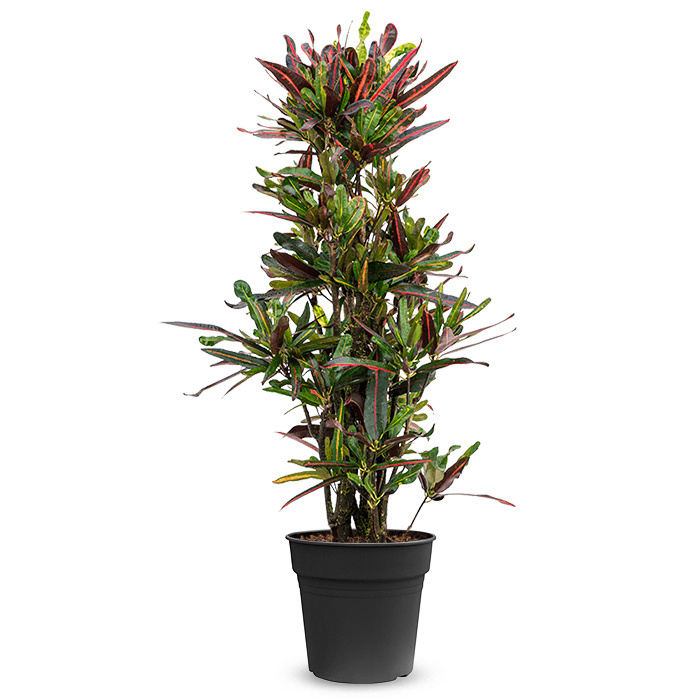 Le Croton Codiaeum ou buisson magique doit son nom néerlandais à ses grandes feuilles panachées, qui peuvent devenir blanches, jaunes, rouges, orange et même pourpres. Le Croton appartient à la famille des Crotoneae (Euphorbiaceae), ou en néerlandais : la famille des Euphorbiacées. Ces plantes d'intérieur sont originaires du sud-est de l'Asie.