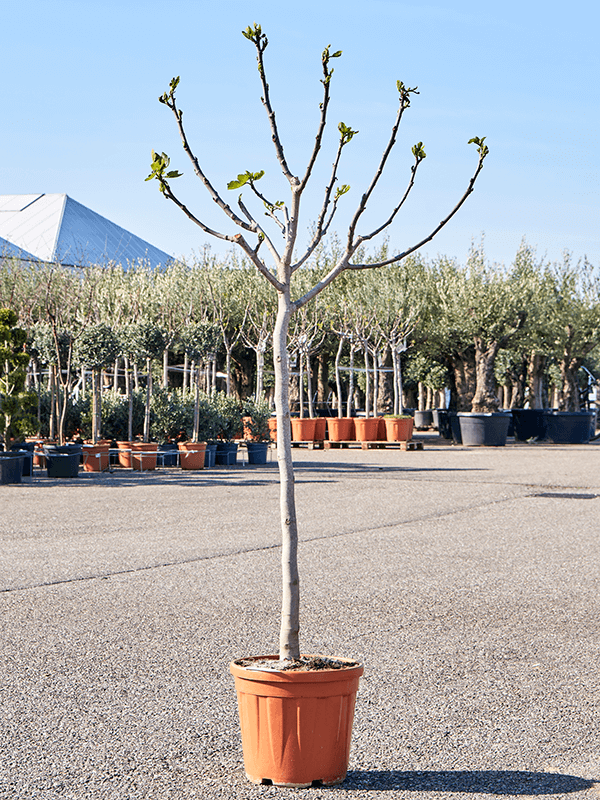 Hiver : Le figuier peut survivre jusqu'à -15°C. Veillez à ce que l'arbre soit placé dans un endroit peu venté. Il est également important que la plante devienne plus sèche à partir de septembre. Trop d'humidité dans le sol est aspirée par l'arbre et stockée dans le tronc. En cas de gel extrême, l'humidité de l'arbre gèle et se dilate. Cela provoque l'apparition de fissures et le fendillement des troncs et des branches. Dans tous les cas, si la plante est en pot sur la terrasse, veillez à ce que les racines soient protégées du froid, car elles ne résistent pas à l'hiver.