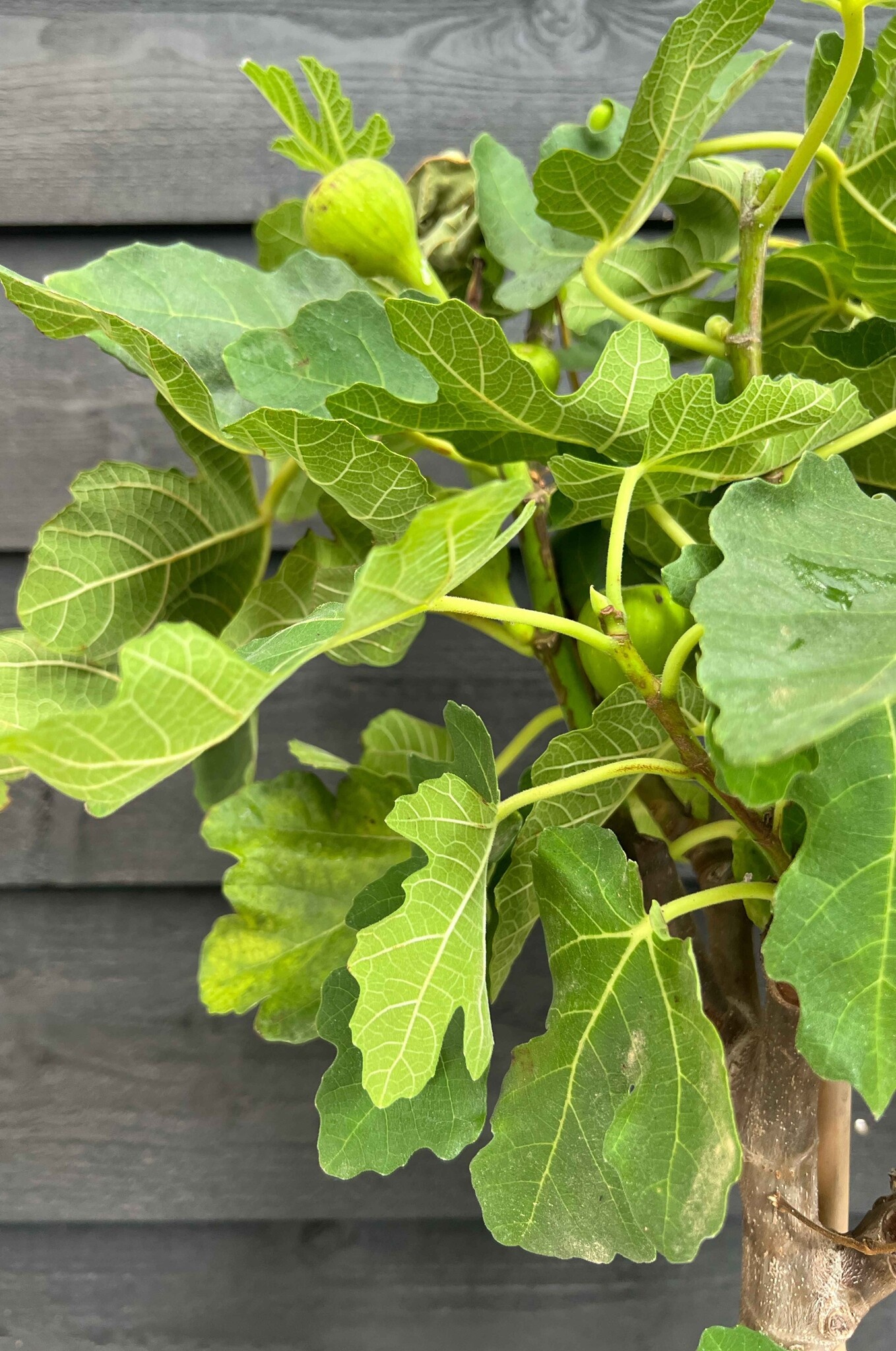 Généralités : Ficus carica, également connu sous le nom de figuier, est originaire d'Asie occidentale. Le figuier est un arbre à feuilles caduques. Ses feuilles sont coriaces et peuvent atteindre une taille de 30x25cm. Les fruits du figuier mûrissent entre juillet et septembre. Ce sont des fruits sucrés qui mûrissent bien même avec un été hollandais.