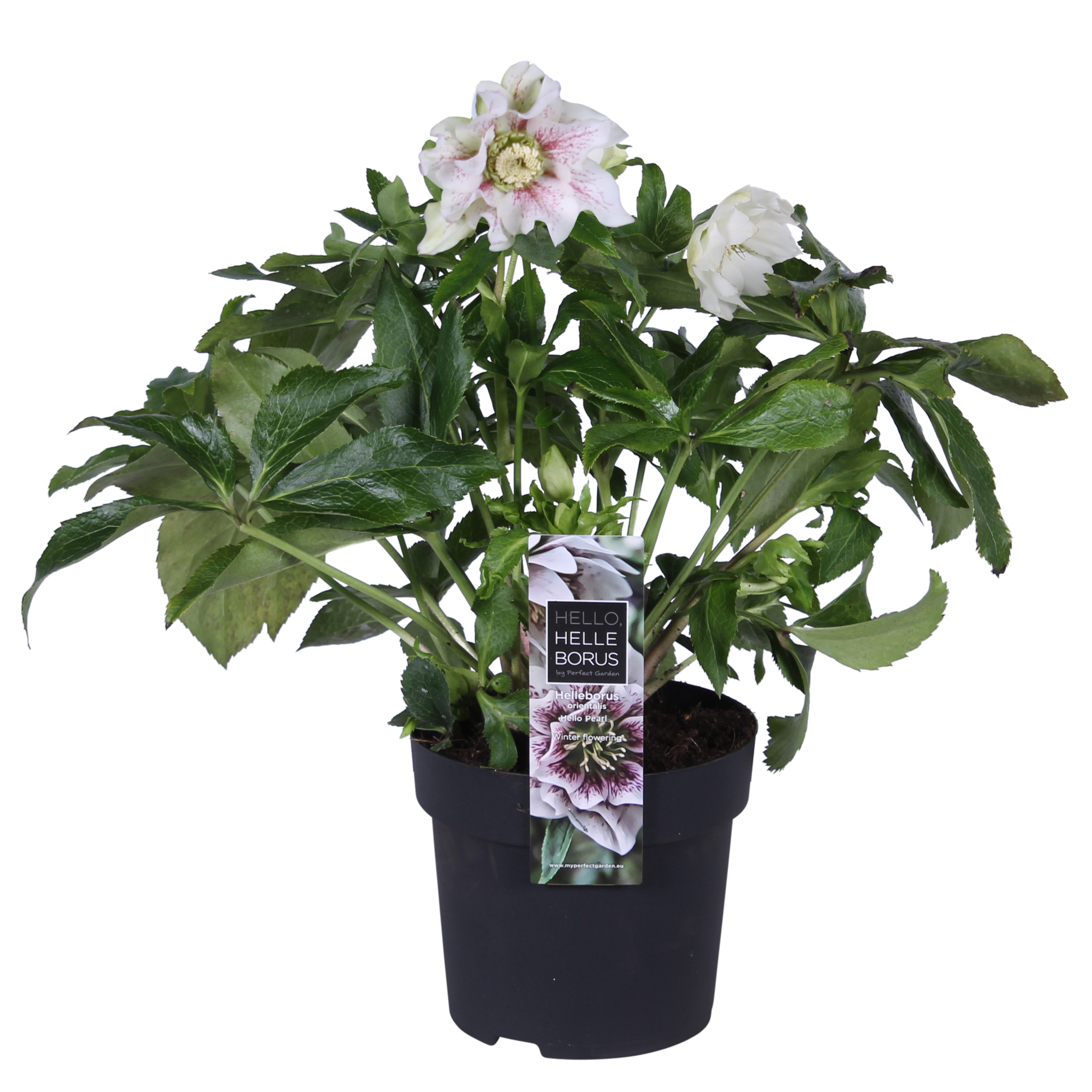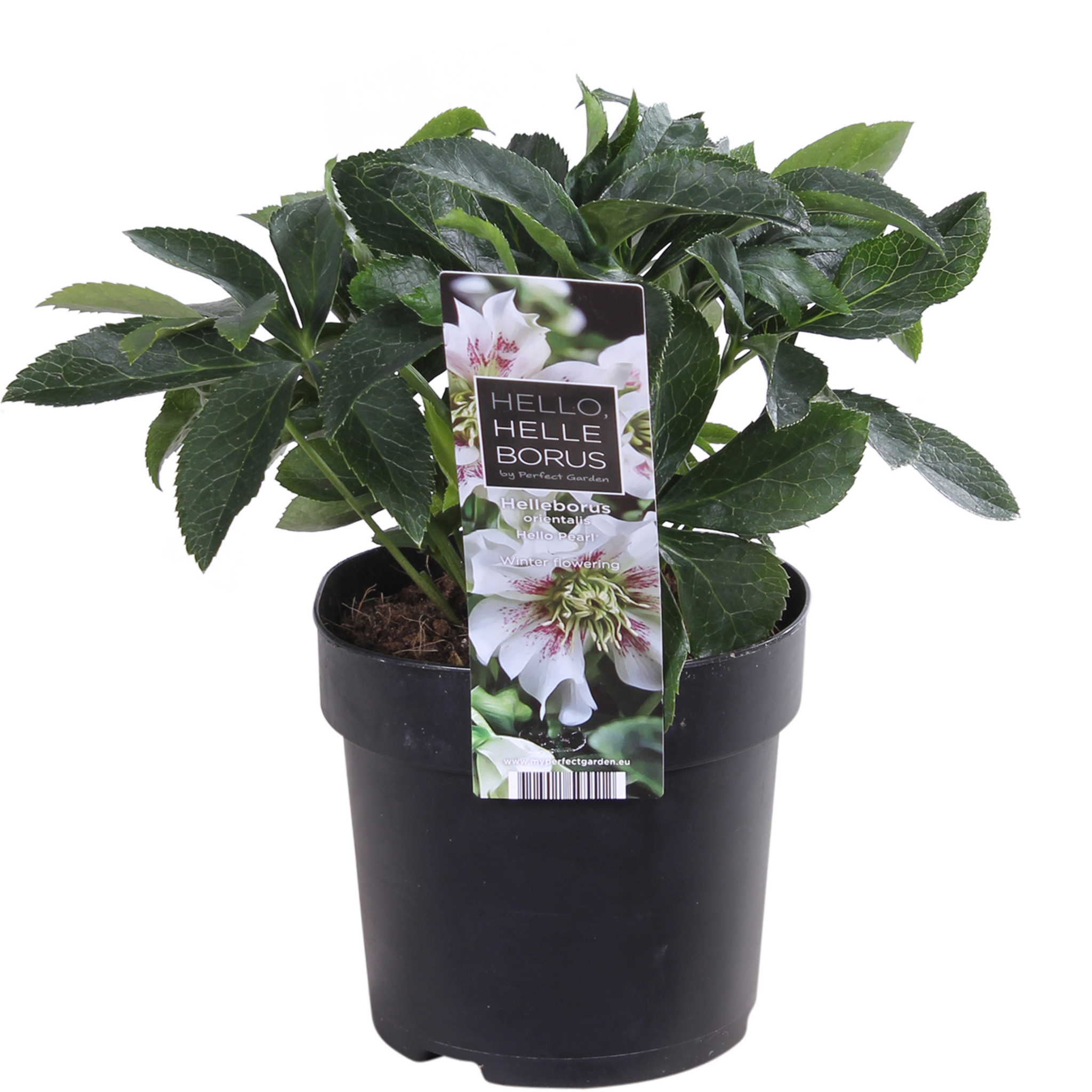 "L'hellébore oriental Hello Pearl, également appelé rose de printemps, apporte de la couleur à votre jardin ou à votre terrasse en hiver et au début du printemps. Étant l'une des rares plantes à fleurir en hiver et au début du printemps, l'hellébore attire également les premières abeilles qui sortent de leur hibernation. Cette plante est très facile à utiliser dans le jardin et sur la terrasse. Les fleurs ont des pétales blancs à roses parsemés de taches roses ou violettes et apparaissent de décembre à avril. Taillez les feuilles disgracieuses au sol après l'hiver et la plante repoussera au printemps avec de nouvelles feuilles. Cette plante de jardin n'aime pas être en plein soleil, mais pousse bien dans un endroit ensoleillé le matin ou le soir. L'hellébore préfère un endroit abrité dans un sol riche en humus et humide et a peu d'exigences en matière de sol.
