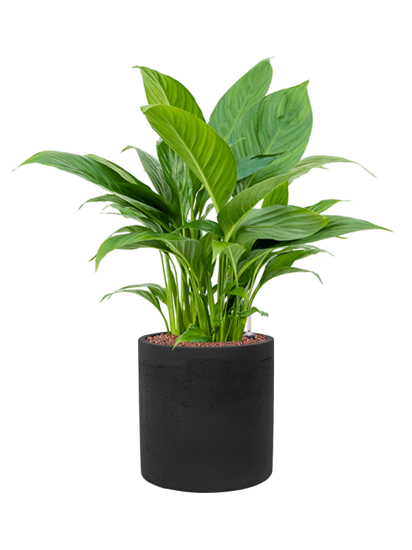 Onze basis opmaak bestaat uit semi hydro, dat betekent dat wij vanaf een potmaat van 20 centimeter en groter, de planten rondom de kwekersaarde afstrooien met hydrokorrels. Hierbij heeft u als extra keuze om een watermeter toe te voegen en of u de bovenkant van de pot wilt laten afstrooien met houtsnippers.