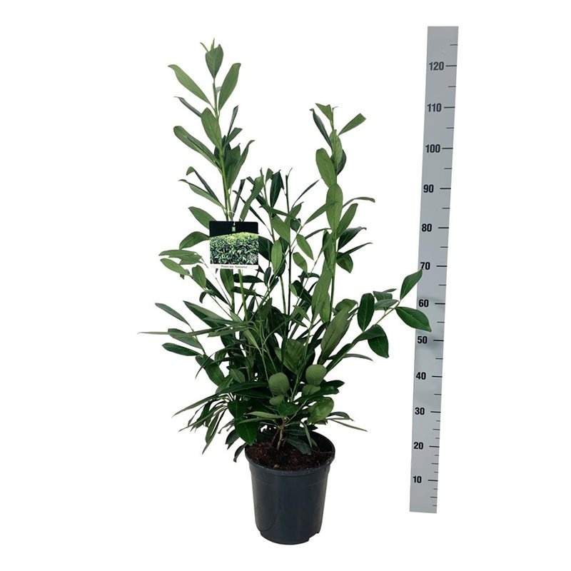 Le laurier du Portugal est un arbuste à feuilles persistantes qui peut atteindre une hauteur de 3 à 4 mètres. Il possède des feuilles brillantes, vert foncé, qui ressemblent à celles du laurier commun, mais qui sont légèrement plus étroites. Au printemps, Prunus caucasica produit des fleurs blanches qui donnent ensuite de petites baies noires.